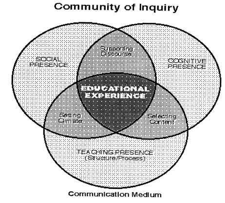 The first element in the model is the development of cognitive presence, which Garrison et al. (2000) define as “the extent to which the participants in any particular configuration of a community of inquiry are able to construct meaning through sustained communication.” The second element is teaching presence, which includes designing and managing learning sequences, providing subject matter expertise, and facilitating active learning. The third element is social presence, defined as the ability of learners to project themselves socially and emotionally in a community of inquiry. The function of this element is to support the cognitive and affective objectives of learning. Social presence supports cognitive objectives through its ability to instigate, sustain, and support critical thinking in a community of learners. It supports affective objectives by making the group interactions appealing, engaging, and thus intrinsically rewarding, leading to an increase in academic, social, and institutional integration and resulting in increased persistence and course completion (Tinto, 1987).