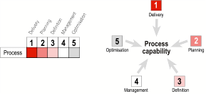 Capability is not just a function of whether the key processes are addressed. It is a summary of activities assessed over five dimensions that capture the organisational lifecycle associated with each key process.
