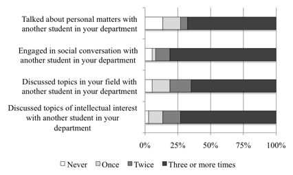 | Supportive faculty environment | Faculty are accessible for scholarly discussions outside of class Offering enrichment activities (seminars, colloquia, social events) |